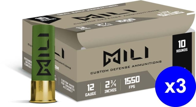 MILI Ammo 12 Gauge Rifled Slug 1 oz 2.75 in 1550 ft/s Centerfire Shotgun Slug Ammo 30 Rounds. The meticulously engineered formula delivers consistent penetration at high-velocity downrange. Designed ...