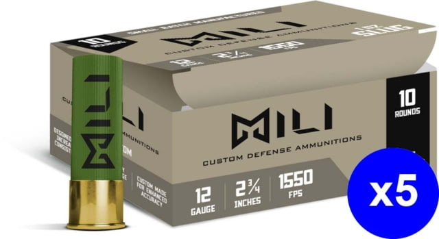 MILI Ammo 12 Gauge Rifled Slug 1 oz 2.75 in 1550 ft/s Centerfire Shotgun Slug Ammo 50 Rounds. The meticulously engineered formula delivers consistent penetration at high-velocity downrange. Designed ...