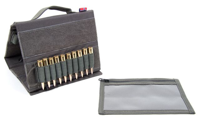 Ulfhednar Ammunition folder w/40 cartidge holders Cordura NSN N. Holds up to 40 rifle cartridges. Sturdy carrying handle. Can set up in a triangle & locked. The exterior waterproof pocket can be ...