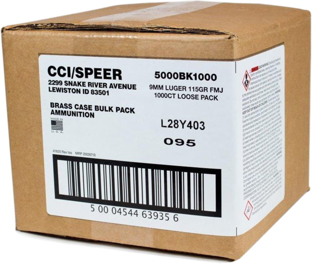 CCI Ammunition Blazer 9mm Luger 115 Grain FMJ Brass Centerfire Handgun Ammo 1000 Rounds Loose Pack. It offers reliable accurate performance for target shooting.Features:Features reloadable brass ...